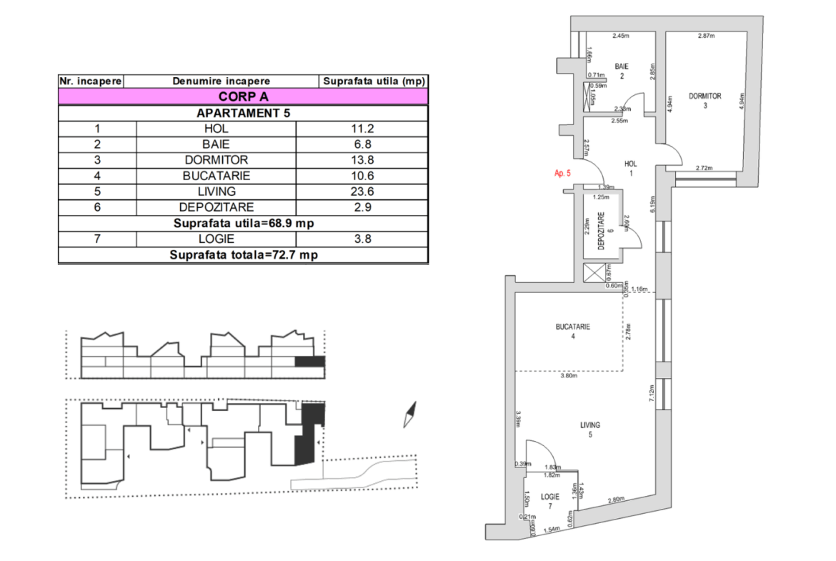 E1A05 – Apartament 2 camere, etaj 1, 72.7m