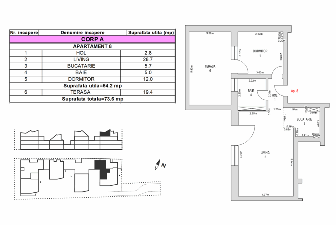 Suprafață proprietate 54.2 m²