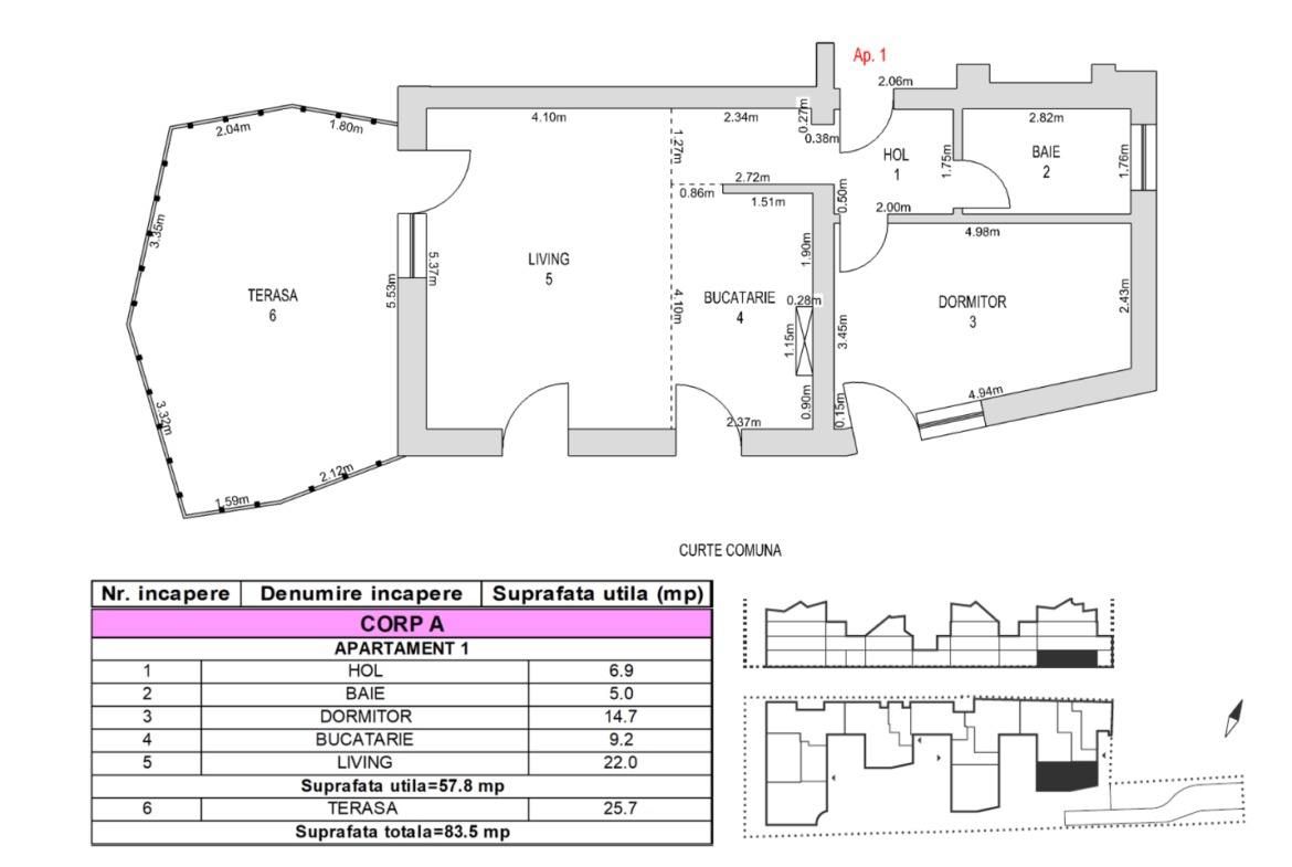 PA01 – Apartament 2 camere, parter, 57.8mp, grădină 25.7mp