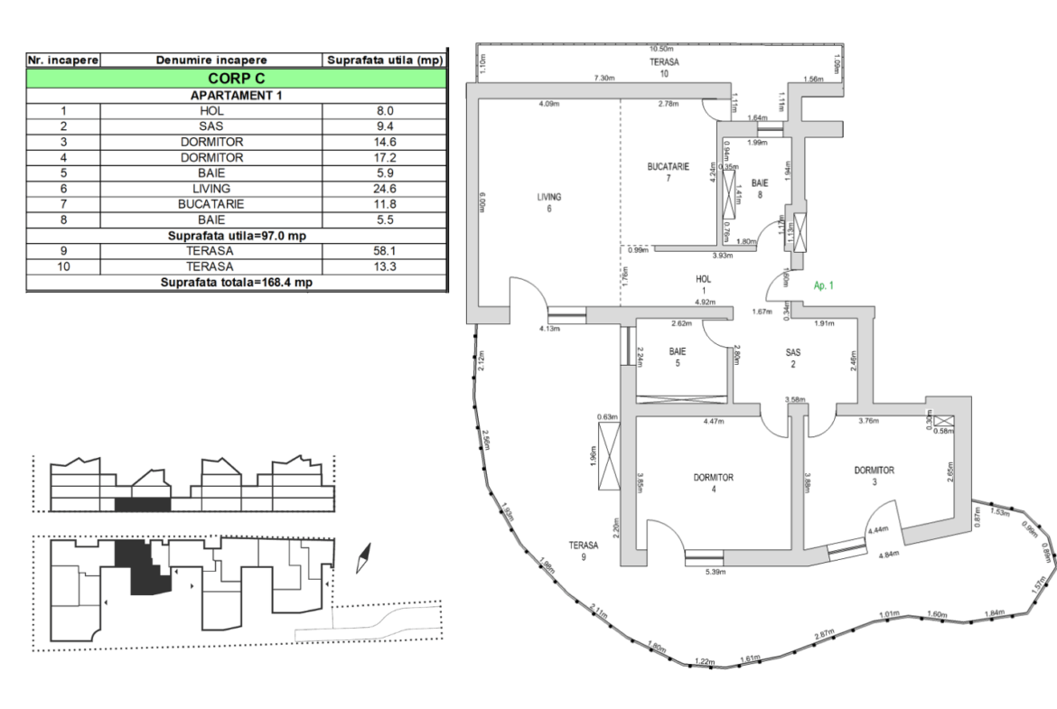PC01 – Apartament 3 camere, 97mp, parter, grădină 71.4mp