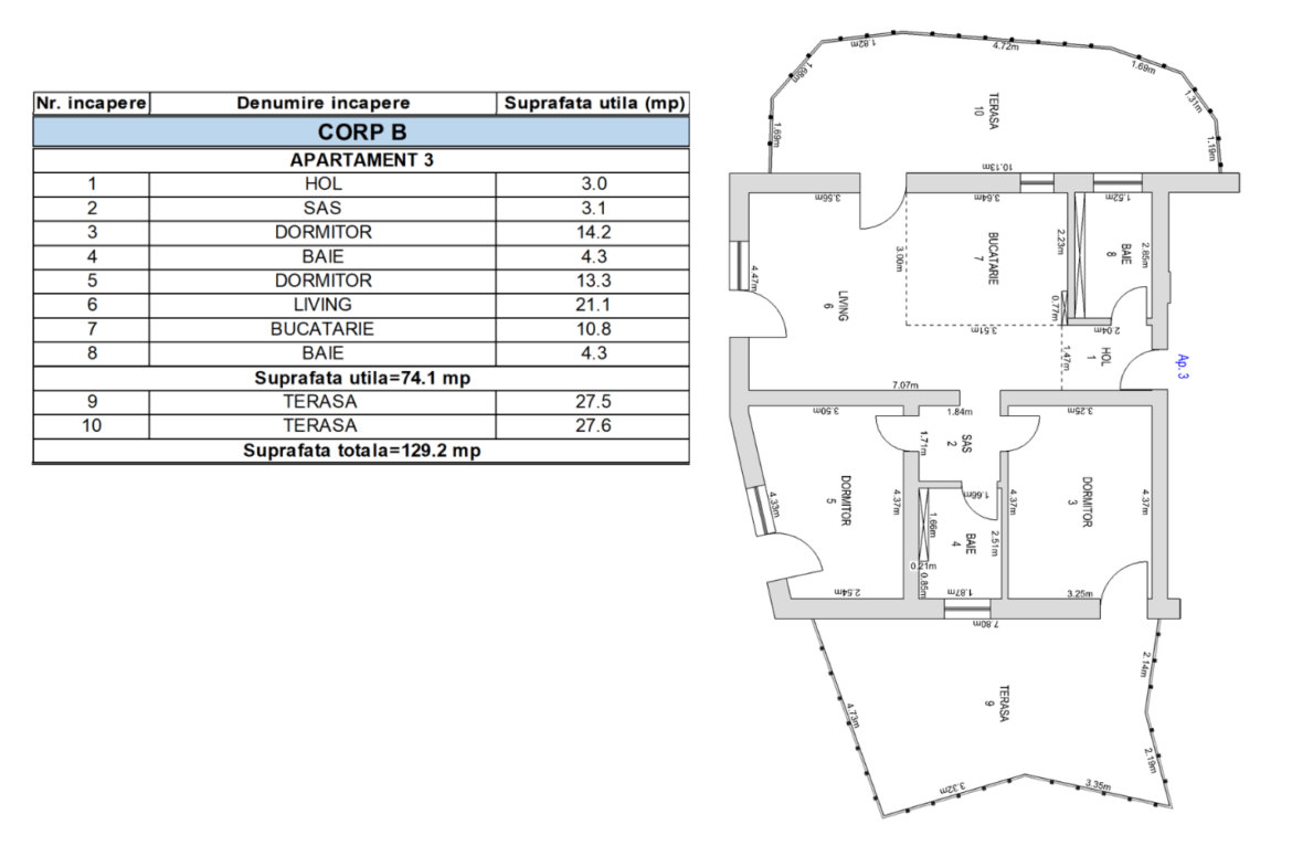 PB03 – Apartament 3 camere, parter, 74.1mp, grădină 55.1mp